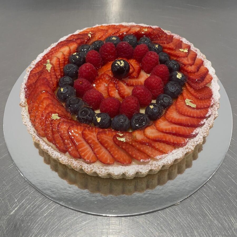Short Bread Crust Flan. Vanilla Custard Cream. Fresh Berries.